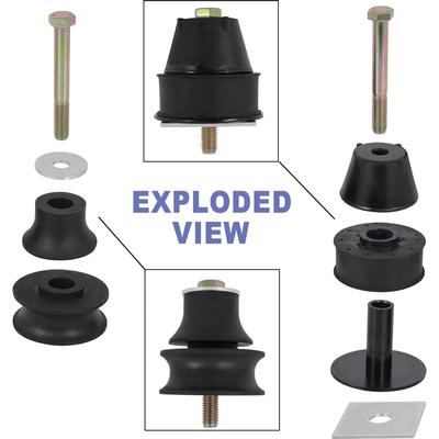 Reproduction of the original front and rear cab mount bushing set for 1973-80 Chevrolet and GMC 1/2 ton 2 WD Pickup models. Each 18-piece bushing set includes upper and lower bushing, bolts and spacers/washers.
